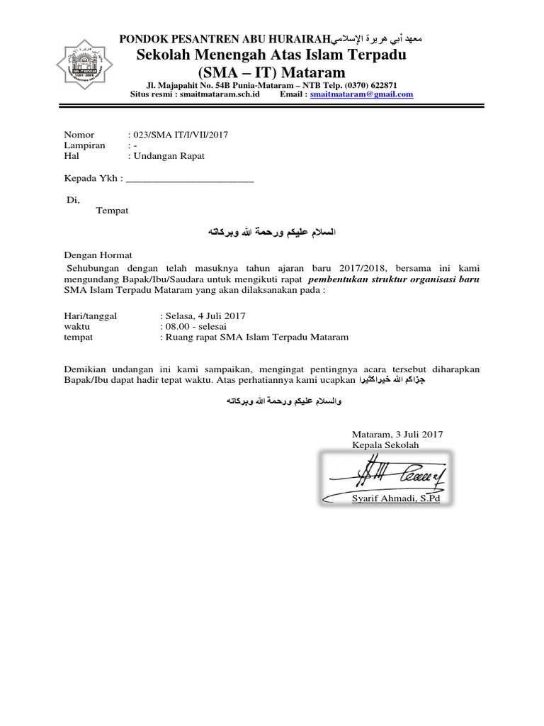 Contoh surat undangan rapat sekolah.